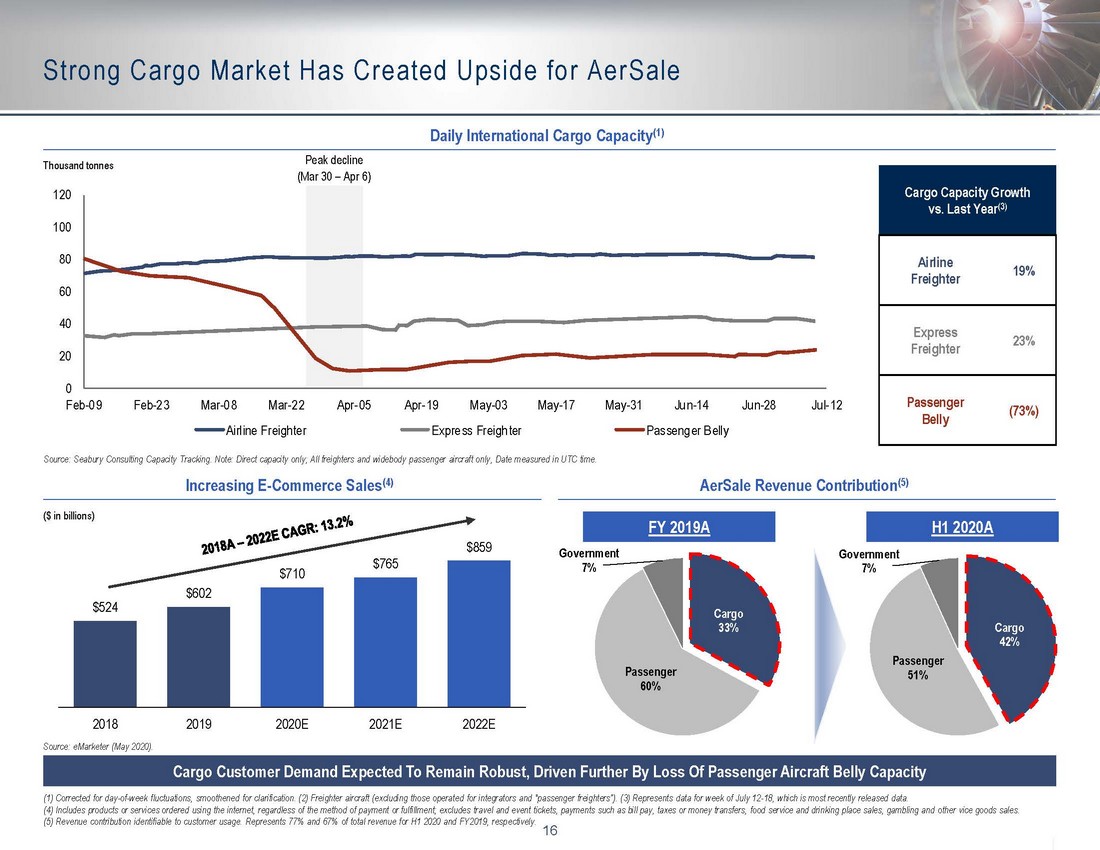 15 AerSale is Purpose Built to Capitalize on Market Dislocation Current Market Dislocation Presents Strong Expansion Opportunity for AerSale ▪ AerSale has the demonstrated ability to identify and acquire the right aircraft and engines to generate outsized returns in a recovering market Other industry participants (i.e. pure - play MRO’s, leasing organizations, and financial buyers) lack the infrastructure and expe rtise to efficiently capitalize on the current market cycle ▪ “First access” opportunity on aircraft stored at AerSale facilities Retirement of younger aircraft will spur growth in pent - up demand for USM parts previously only available from the OEM The addressable USM market is estimated to be over $4B+, and anticipated to experience significant growth as aircraft utiliza tio n normalizes ▪ Capital - constrained mid - life aircraft operators are optimal buyers for Engineered Solutions that significantly reduces their cost of regulatory compliance to keep their aircraft in service ▪ Further upside amidst current market distress to acquire businesses that bring new capabilities and customers, but lack the integrated business model to thrive in the current market dislocation Source: IATA as of June 2020. Opportunity to: Acquire Airline Assets During Downturn Invest Invest Sell Opportunity to: Acquire Airline Assets During Downturn Opportunity to: Monetize During a Profitable Airline Environment Monetize Global Airline Industry Net Profit / Loss (US$ in billions) $(110) $(90) $(70) $(50) $(30) $(10) $10 $30 $50 2008 2009 2010 2011 2012 2013 2014 2015 2016 2017 2018A 2019A 2020E 2021E